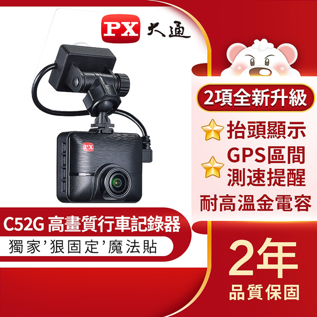 | 【商品名稱或型號】 | 【PX大通】GPS區間/定點測速提醒高畫質行車記錄器 C52G |
