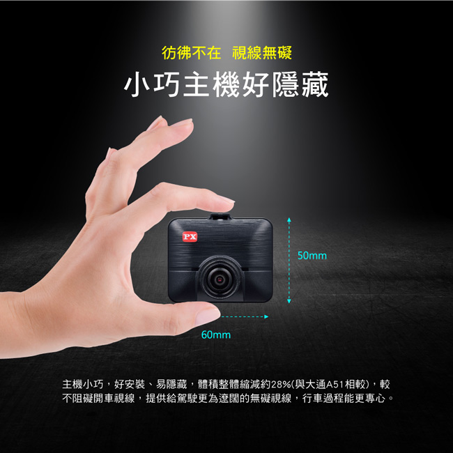*主機小巧,隱藏性佳,不影響駕駛視線(螢幕尺寸:2吋LCD)