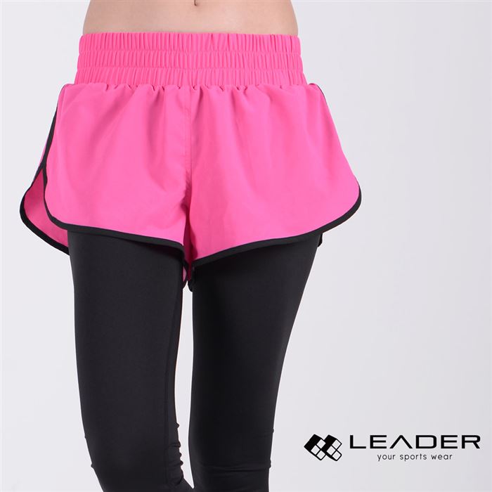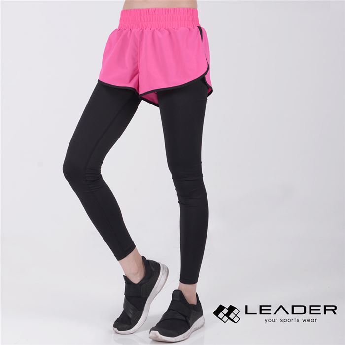 【商品名稱】【Leader X】DS-20假兩件 透氣彈性運動長褲 女款(桃底黑邊M)