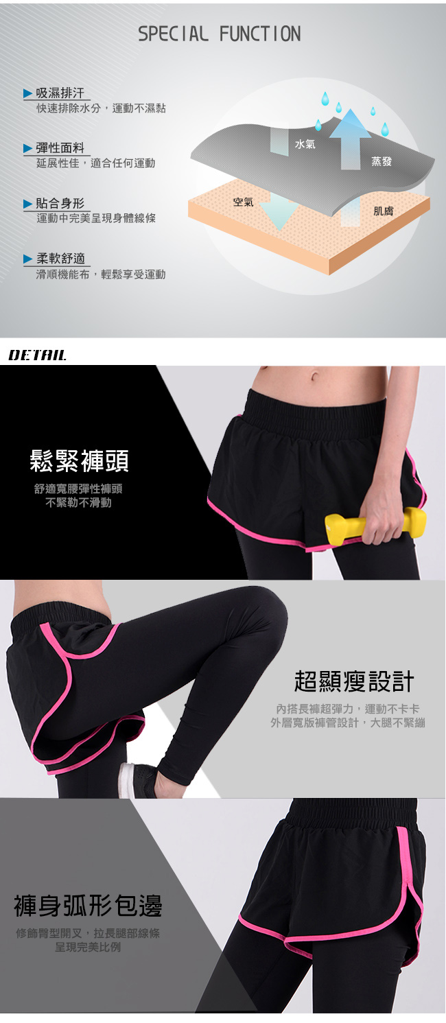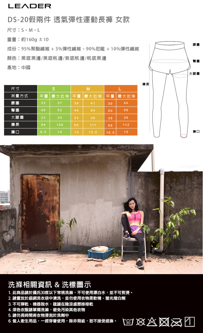 | 商品名稱 | 【Leader X】DS-20假兩件 透氣彈性運動長褲 女款(桃底黑邊M) |