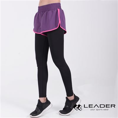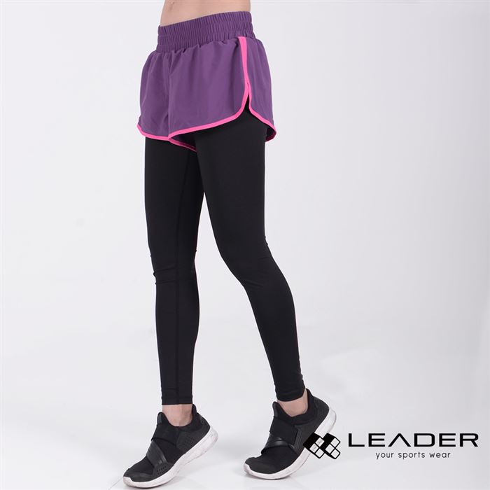 | 商品名稱 | 【Leader X】DS-20假兩件 透氣彈性運動長褲 女款(紫底桃邊S) |
