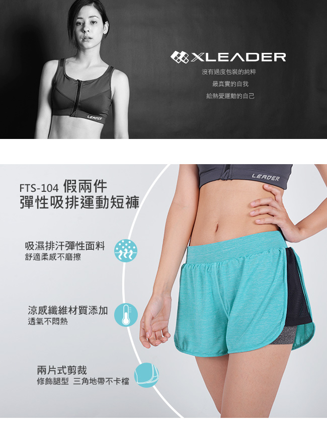 | 商品名稱 | 【Leader X】FTS-104假兩件 彈性吸排運動短褲 女款(果綠M) |