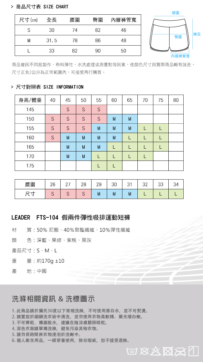 | 商品名稱 | 【Leader X】FTS-104假兩件 彈性吸排運動短褲 女款(深藍S) |