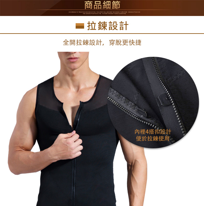 | 商品名稱 | 【Charmen】NY044深U圓領收腹緊身拉鍊背心 男性塑身衣(黑色XL) |