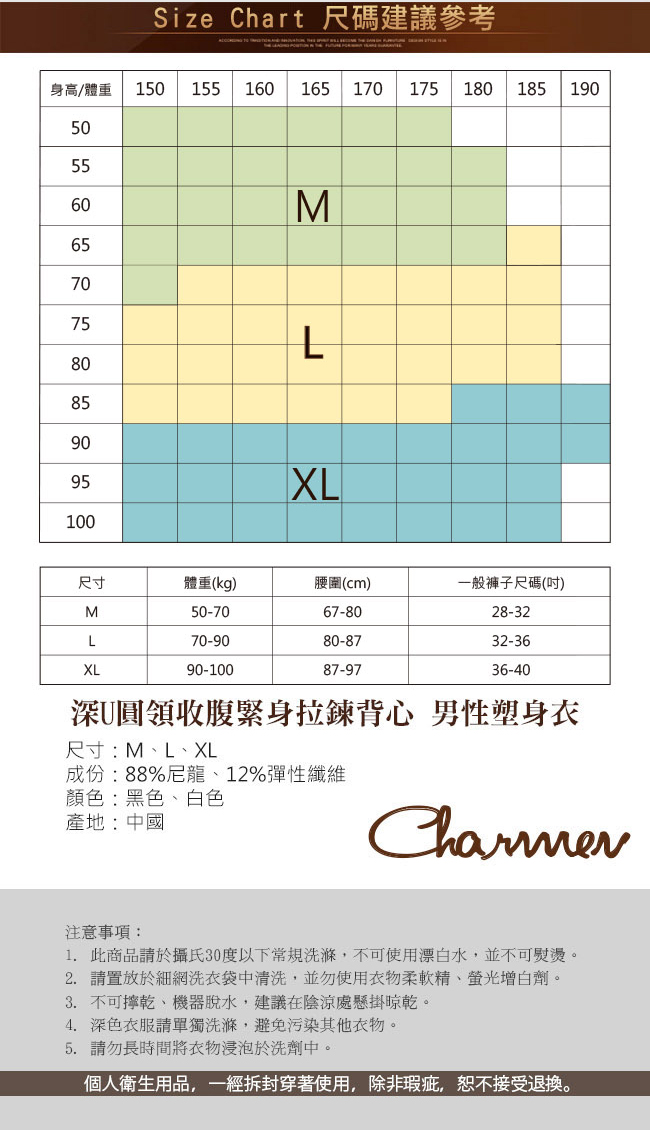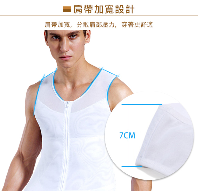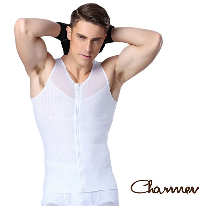 | 商品名稱 | 【Charmen】NY044深U圓領收腹緊身拉鍊背心 男性塑身衣(白色M) |