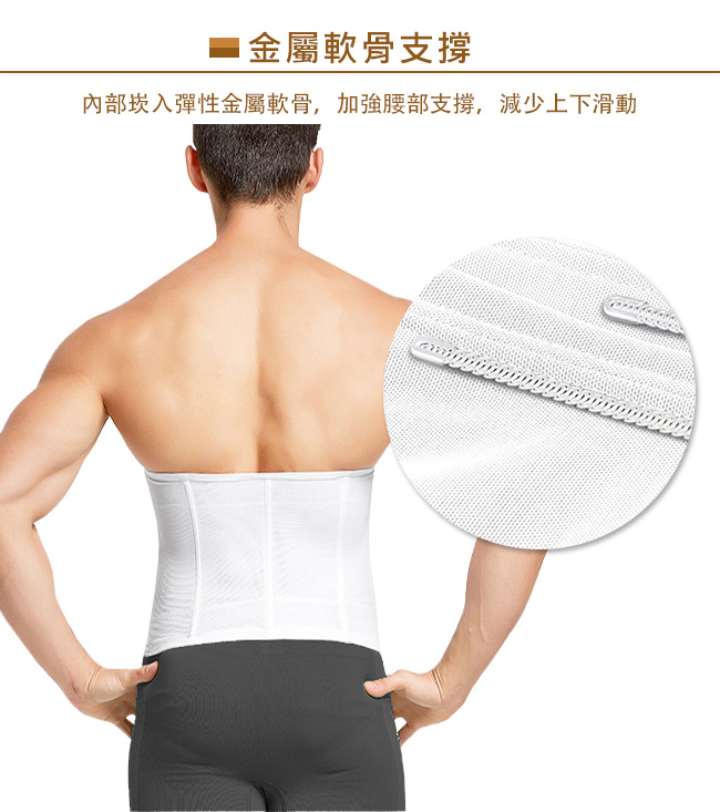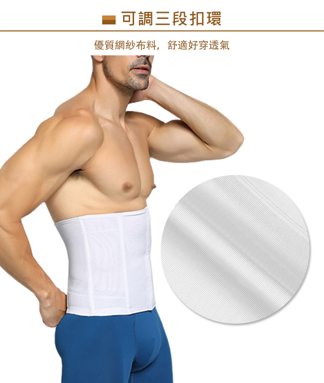 【商品名稱】【Charmen】可調式三段排扣收腹塑腰帶 束腰套 男性塑身(白色L)
