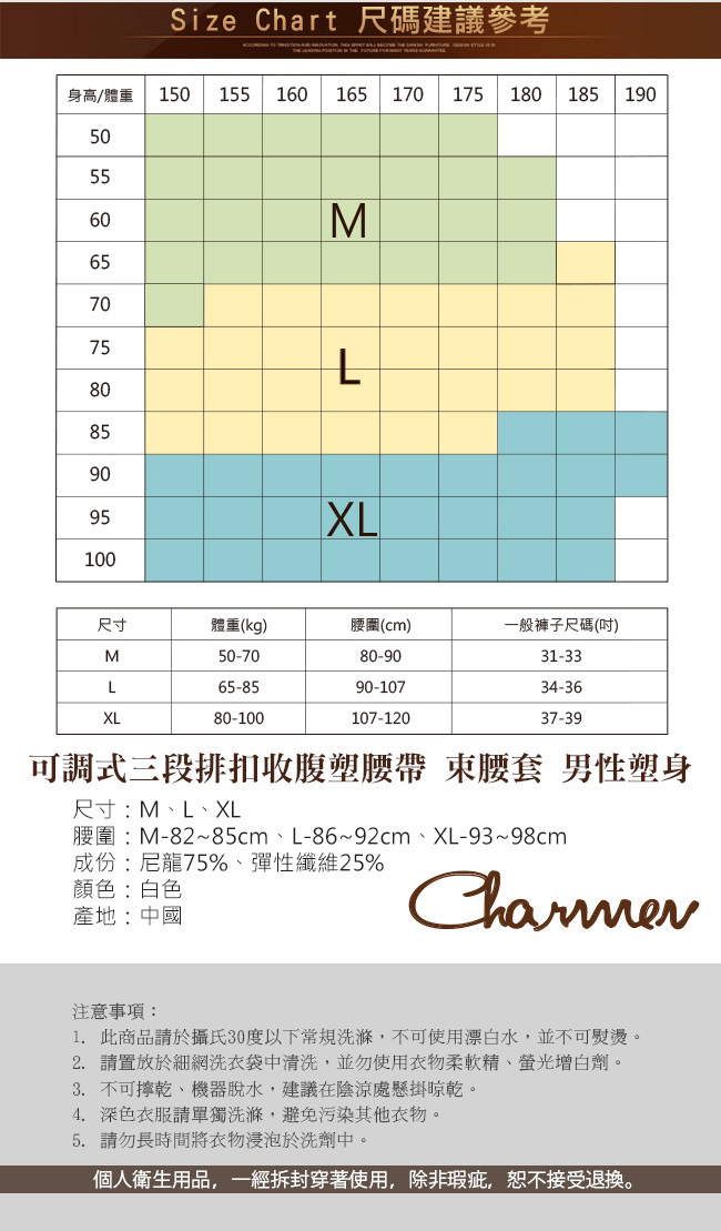 腰圍:M_82~85cm、L_86~92cm、XL_93~98cm