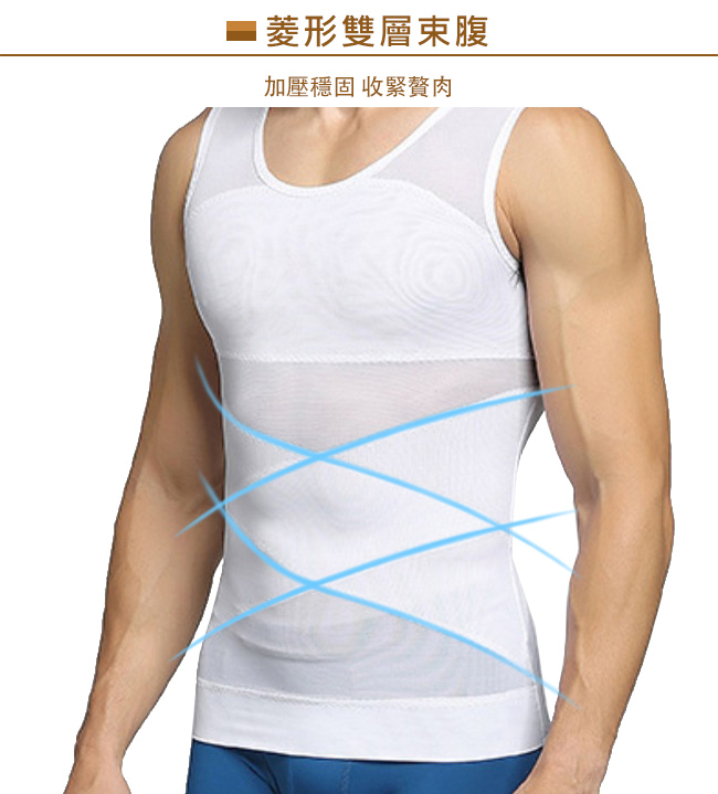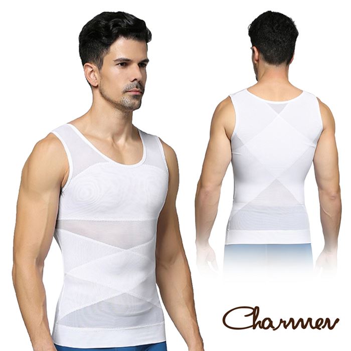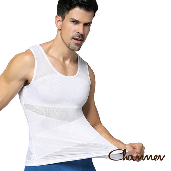 | 商品名稱 | 【Charmen】菱形加壓彈力網紗收腹透氣背心 男性塑身衣(白色M) |