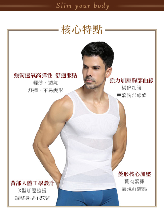 超彈性透氣布料 3D交叉收緊贅肉