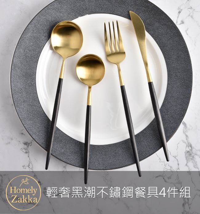 | 商品名稱 | 【Homely Zakka】輕奢黑潮不鏽鋼餐具8件組 |