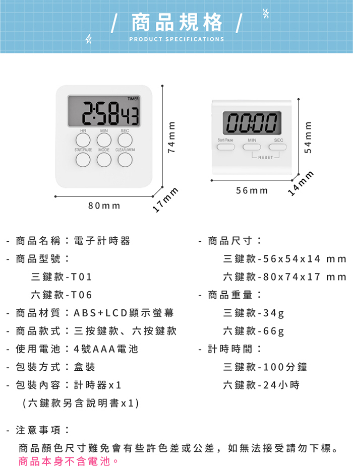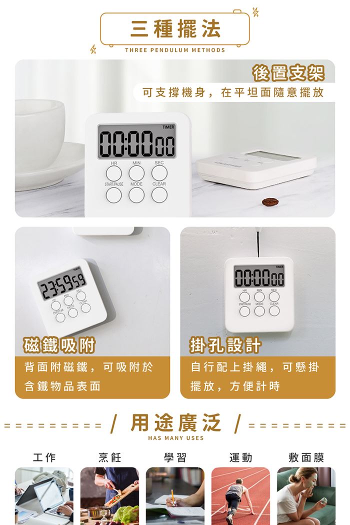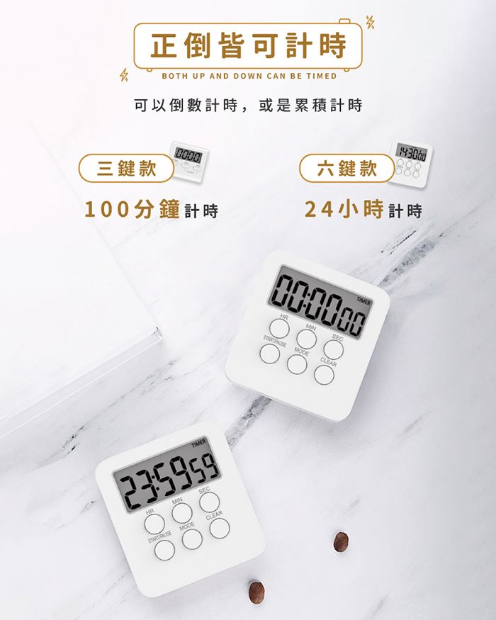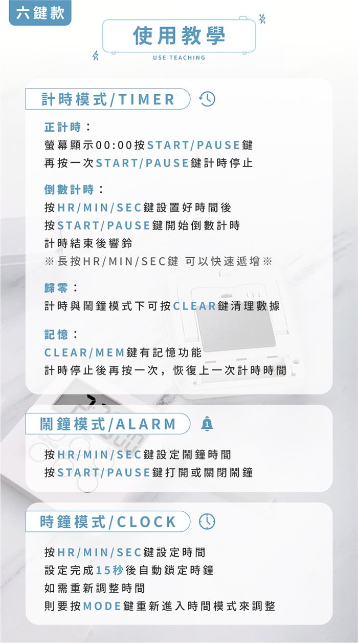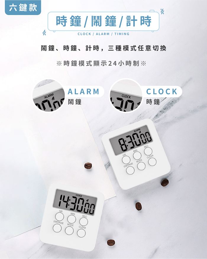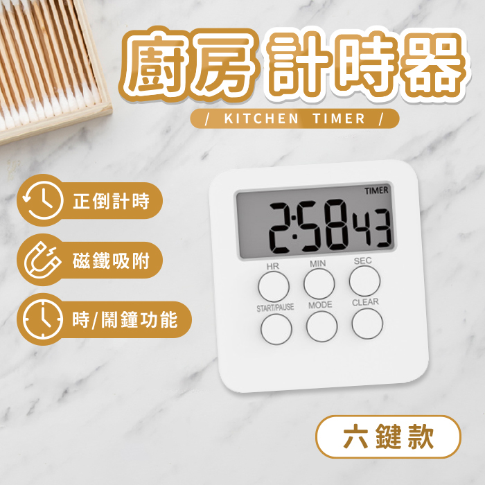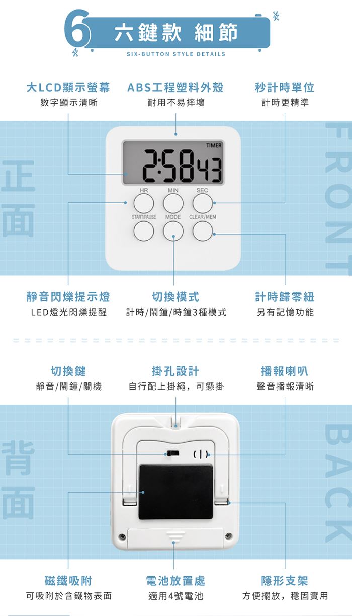 | 【商品名稱】 | 廚房計時器(不含電池)-六按鍵款(4入組) |