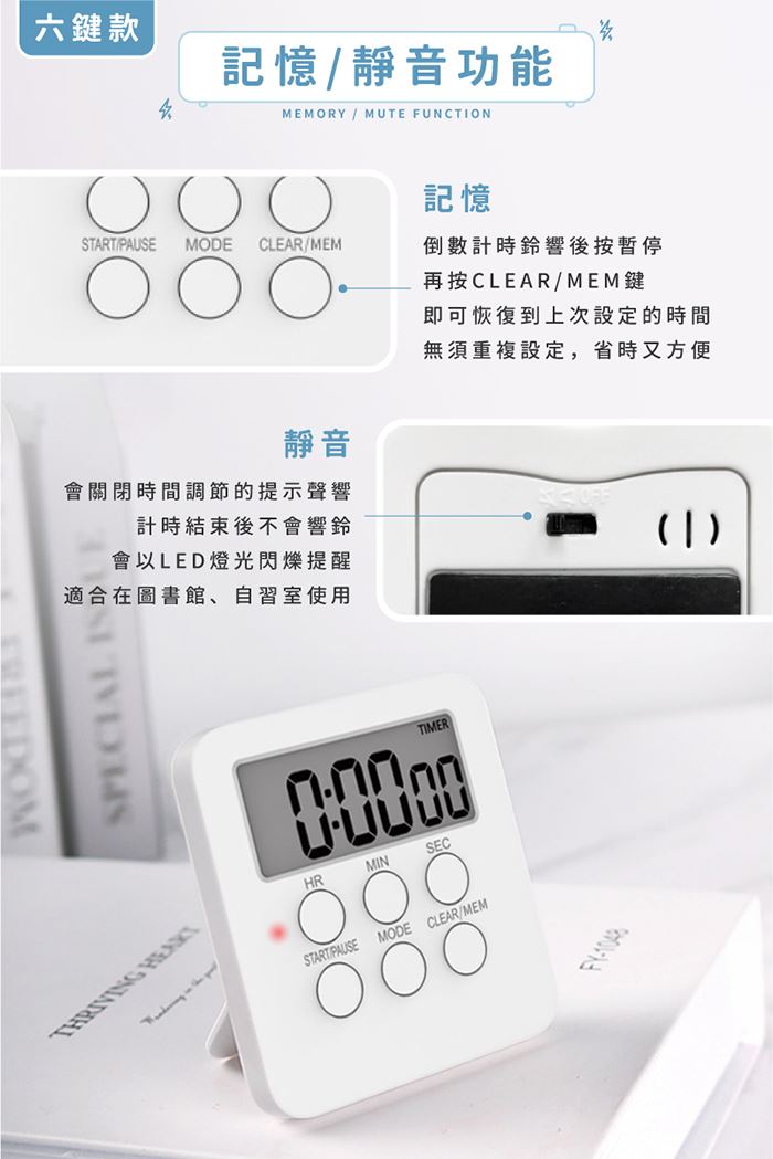 廚房計時器(不含電池)-六按鍵款(4入組)