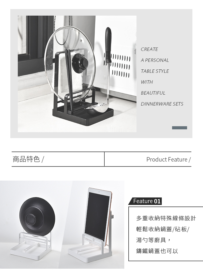 多重收納特殊線條設計-可收納鍋蓋/砧板/湯飯勺