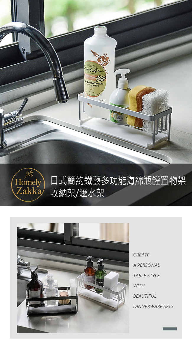 | 商品名稱 | 【Homely Zakka】日式簡約鐵藝多功能海綿瓶罐置物架/收納架/瀝水架_2色一組 |