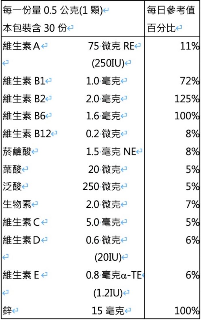 | 營養標示 | 如下圖 |