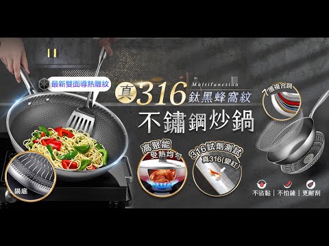 | 商品名稱 | 真316不鏽鋼32CM鈦黑蜂窩紋炒鍋 |