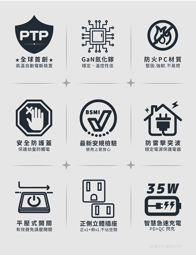 --2P+3P雙插座,PD/QC 3.0雙快充,GaN氮化鎵穩定性好--