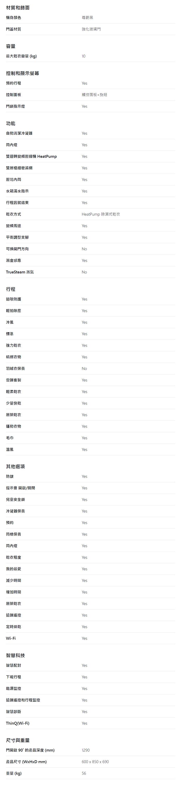 | 商品名稱 | LG樂金 10KG 免曬衣乾衣機 尊爵黑 WR-100VB |