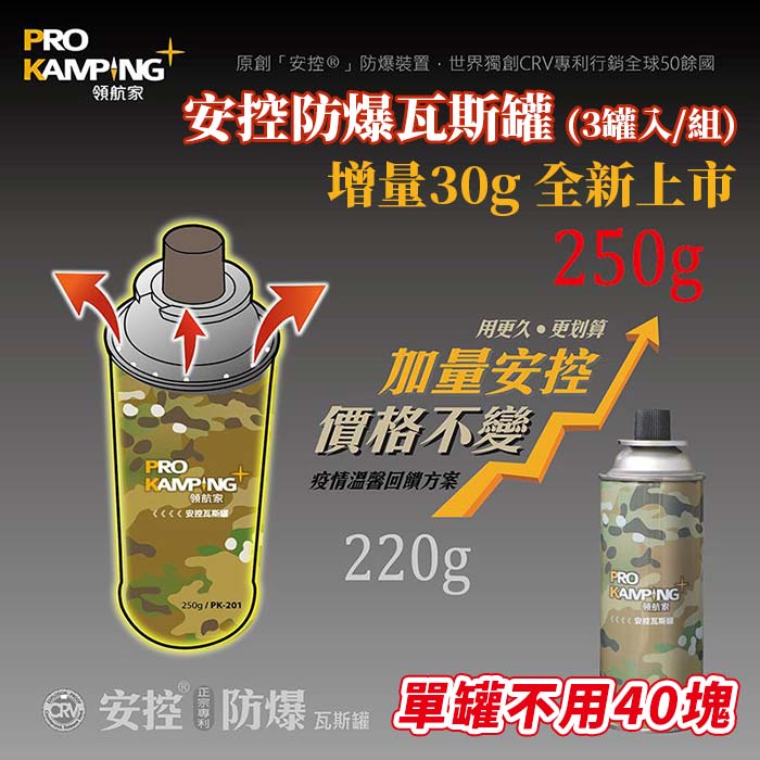 【Pro Kamping 領航家】安控防爆瓦斯罐(250gx3罐/組) [16組裝(共48罐)]