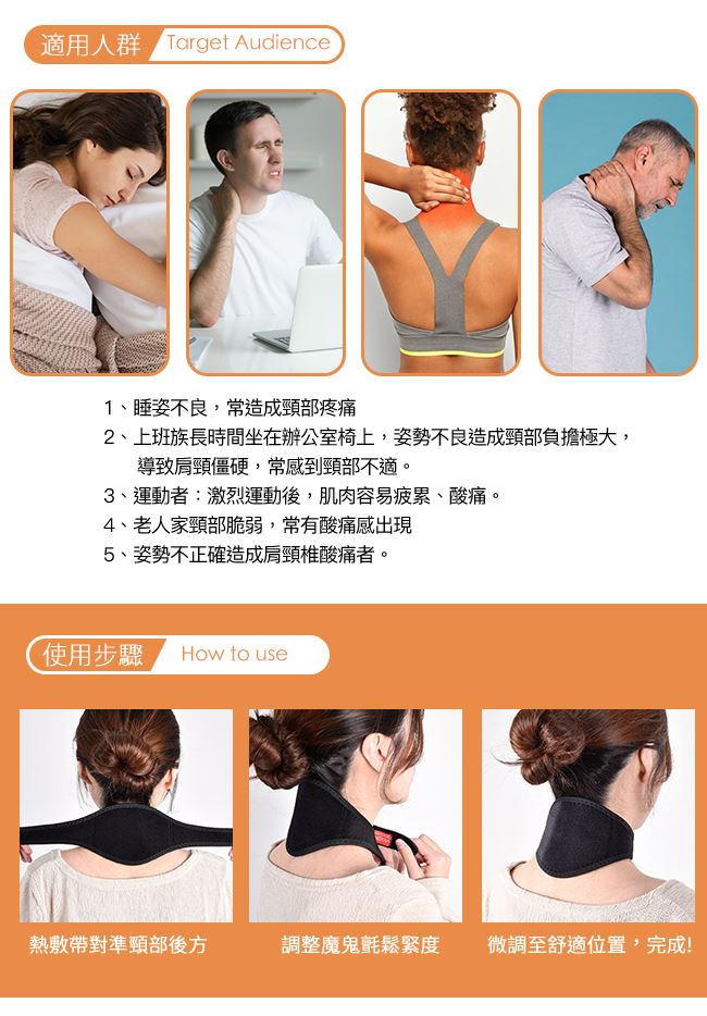 | 【注意事項或使用方法】 | 1.本產品直接皮膚配戴即可,使用前如有疑慮,請徵詢醫生意見。 2.本產品非醫療用品,亦不適用於任何醫療上之行為。 3.使用當中如有不適,或感覺過於灼熱,請暫停使用。 4.懷孕者、重大傷病、體內裝有金屬、輔助儀器者請勿使用。 5.皮膚過敏、有傷口或有體內、體外出血者,請勿使用。 6.初次使用時可不必用水沾濕,待習慣熱度或身體無過敏或不適症狀後再加強熱度。 7.取下熱敷帶後,會有持續熱感,待過段時間熱感會逐漸消退 ,屬於自然現象。 8.新品有些許味道屬正常現象,請先置於通風處,味道即可散去。 |