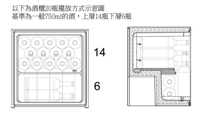 - 溫度差正負1℃,適合紅白葡萄酒或香檳及冰酒及氣泡酒等混合儲存
