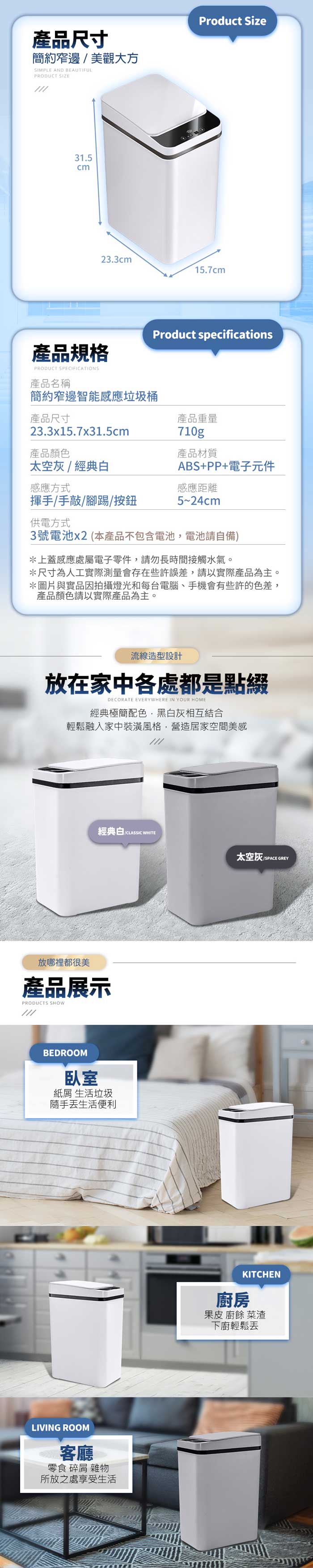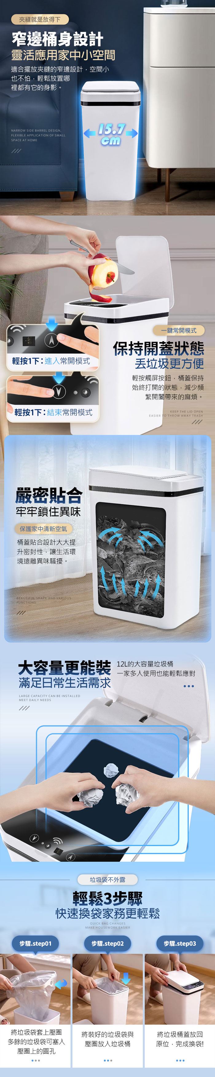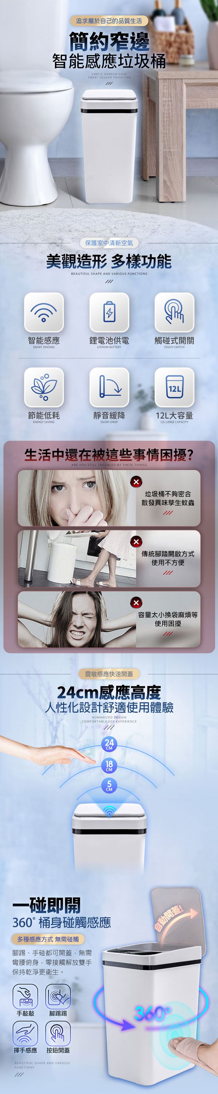 | 商品名稱 | 簡約窄邊12L智能感應垃圾桶 |