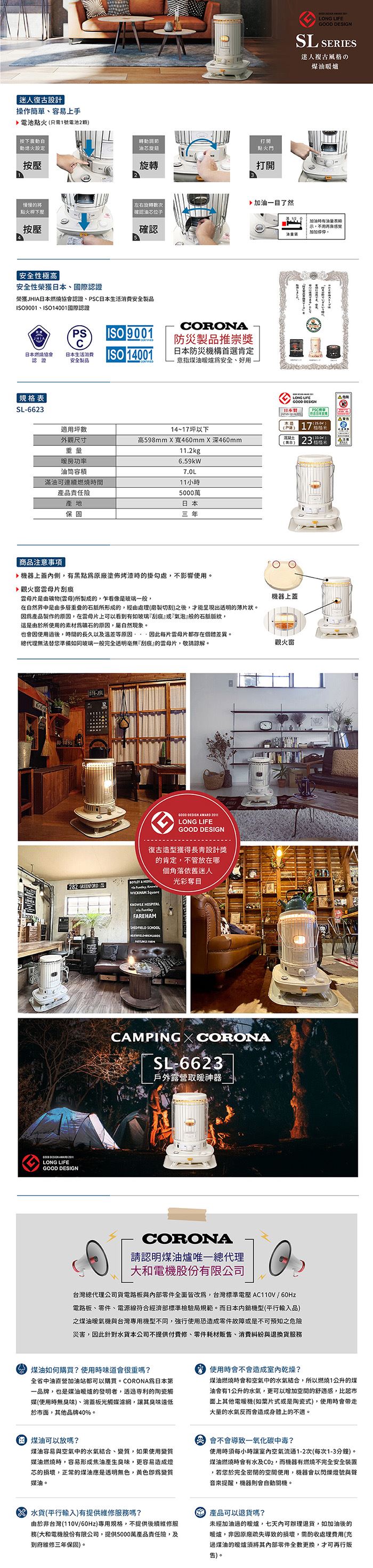 CORONA 對流型煤油暖爐贈電動加油槍 SL-6623 可寄離島