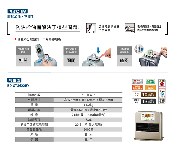 日本CORONA 煤油暖爐7-9坪 BD-ST3622BY 可寄離島