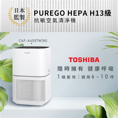 日本東芝TOSHIBA PUREGO HEPA H13級抗敏空氣清淨機(適用6-10坪) CAF-A450TW(W)