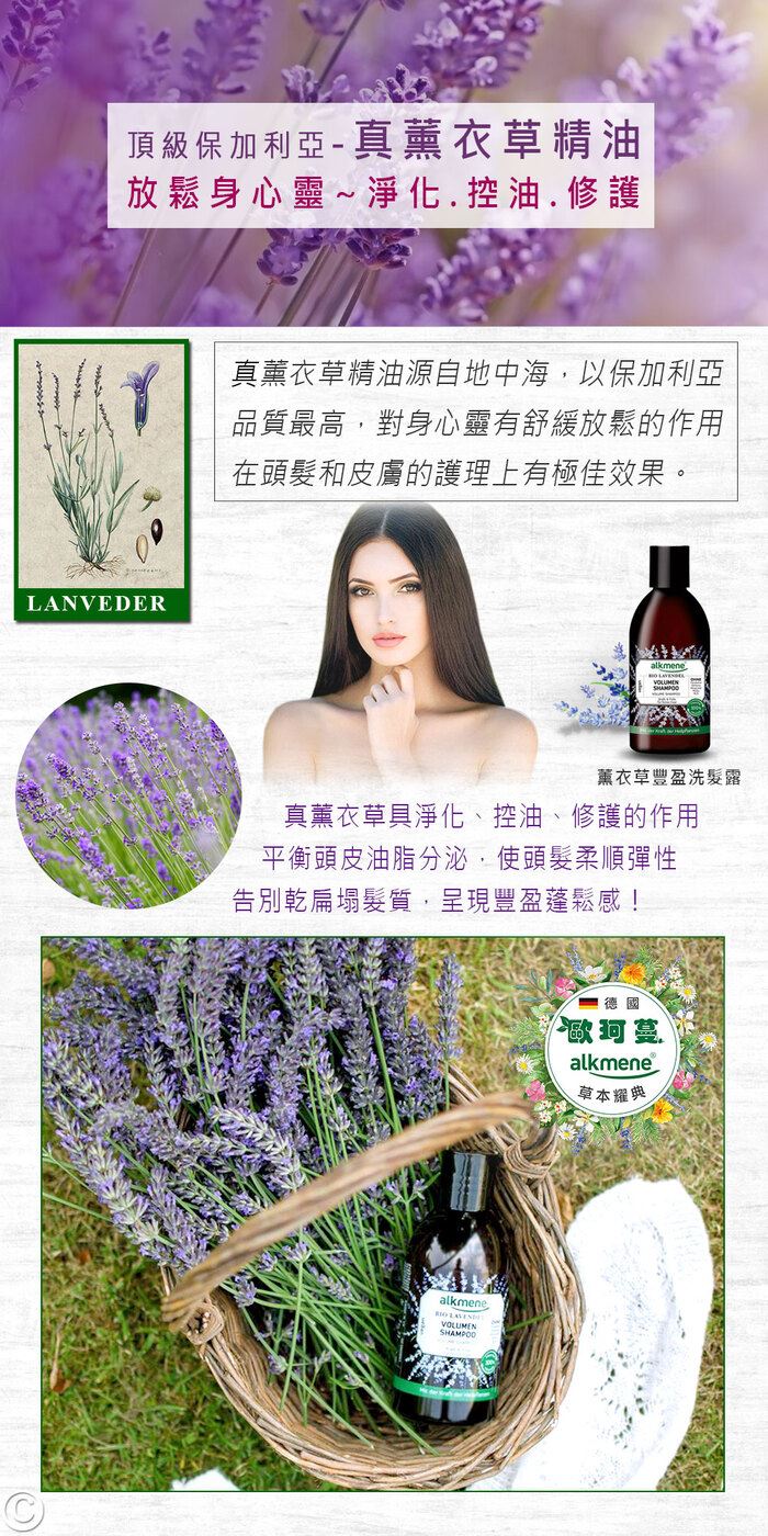 真薰衣草具淨化、控油、修護的作用。平衡頭皮油脂分泌,使頭髮柔順彈性