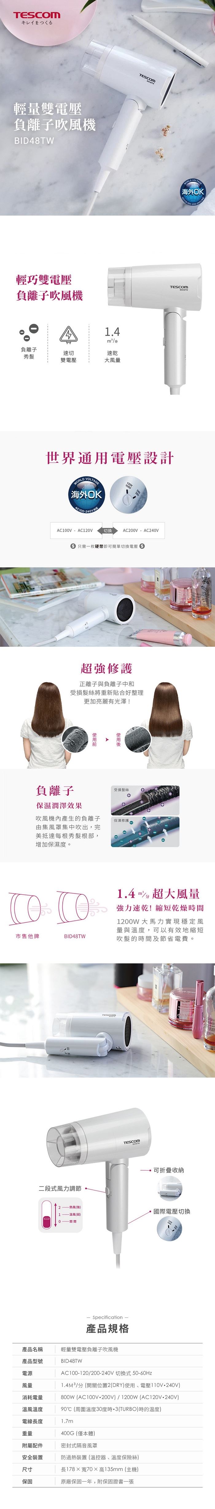 | 商品名稱 | 輕量雙電壓負離子吹風機 |