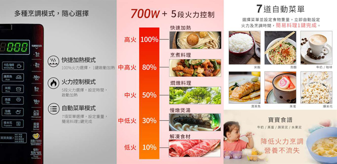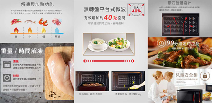 2.平台式微波,有效提升約40%空間,均勻受熱