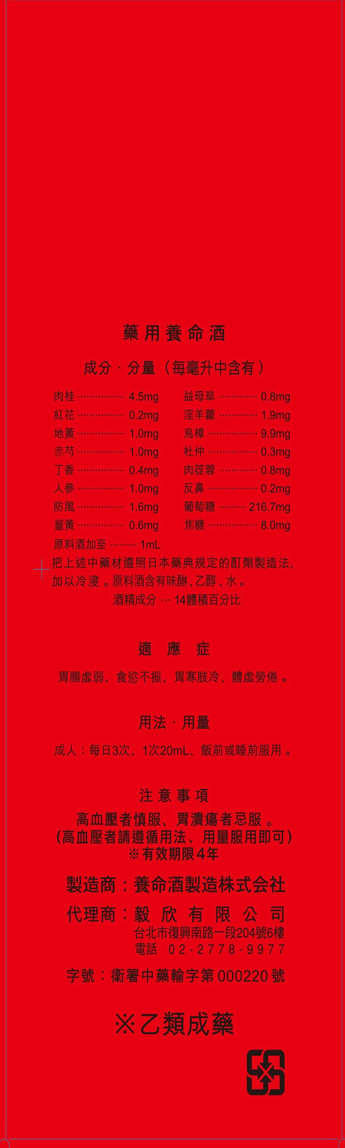 | 商品名稱 | 養命酒 藥用養命酒1000ml x1瓶(乙類成藥) |