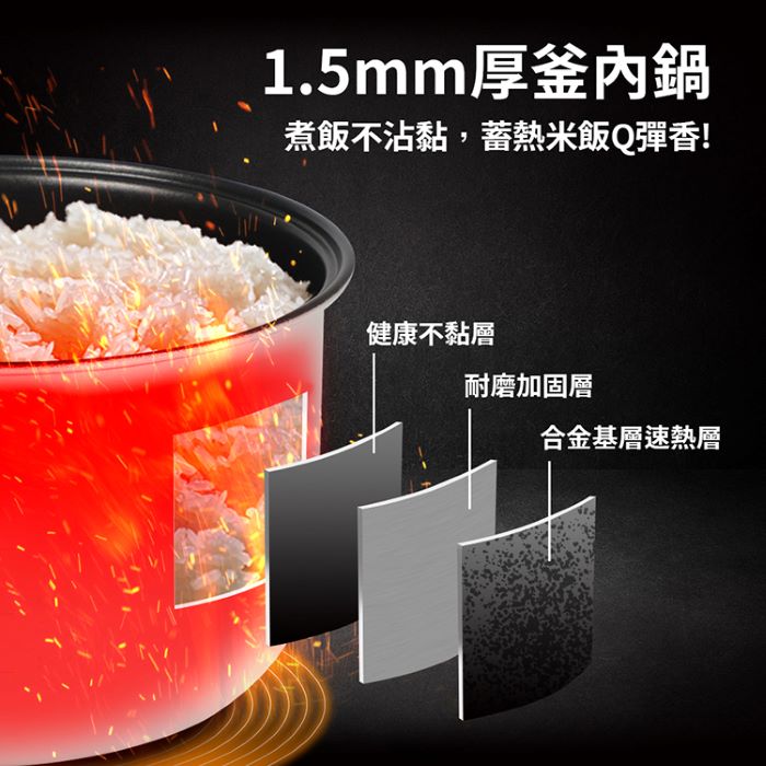 1.5mm厚釜內鍋, 煮飯不沾黏