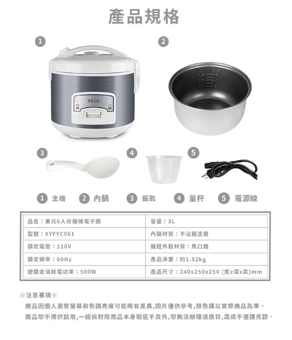 | 商品名稱 | 東元6人份電子鍋XYFYC061 |
