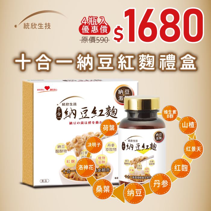 | 商品名稱 | 統欣生技 十合一納豆紅麴膠囊 4入禮盒 |