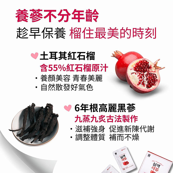 百草之王6年根高麗黑蔘+土耳其紅石榴。
