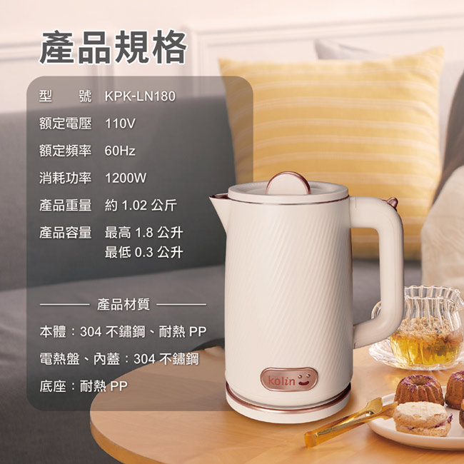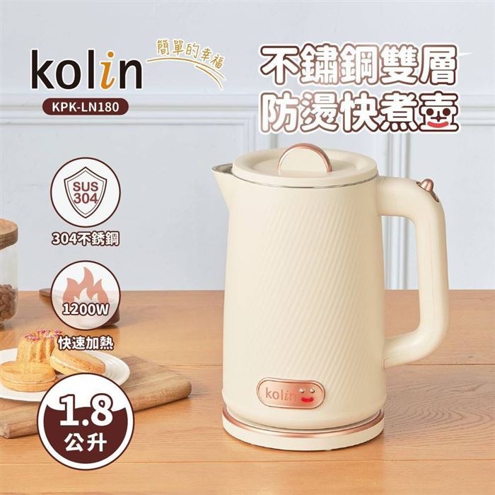 【Kolin歌林】1.8L不鏽鋼雙層防燙快煮壺 KPK-LN180