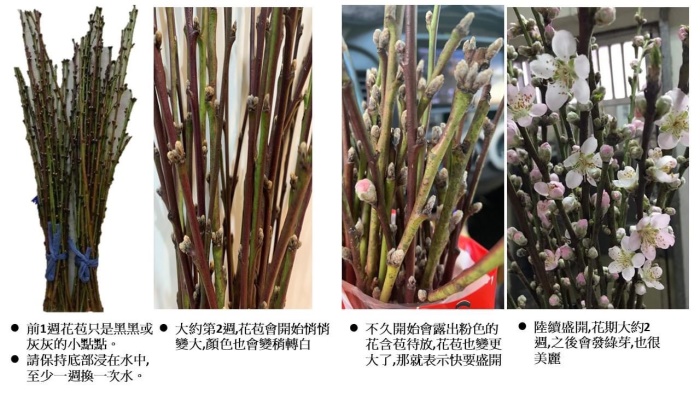 在20℃的氣候環境下,桃花需透過水培方式才會開花,天氣越冷可能會延遲開花時程。