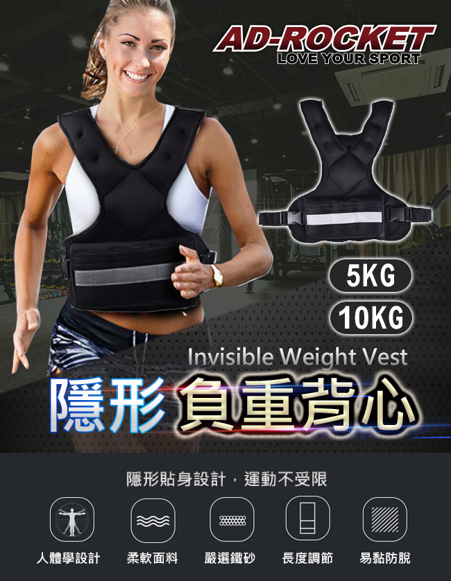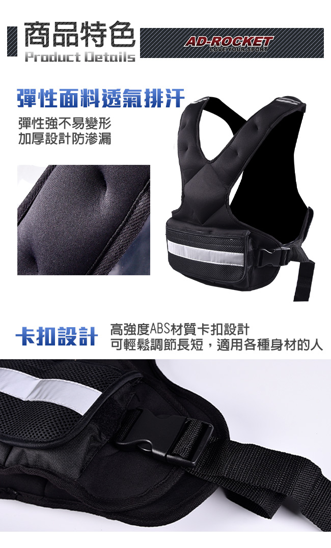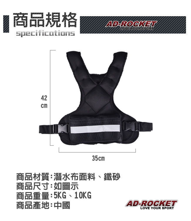 | 【商品名稱/型號】 | 【AD-ROCKET】隱形可調式負重背心/負重衣/沙袋 10KG(重量可調) |