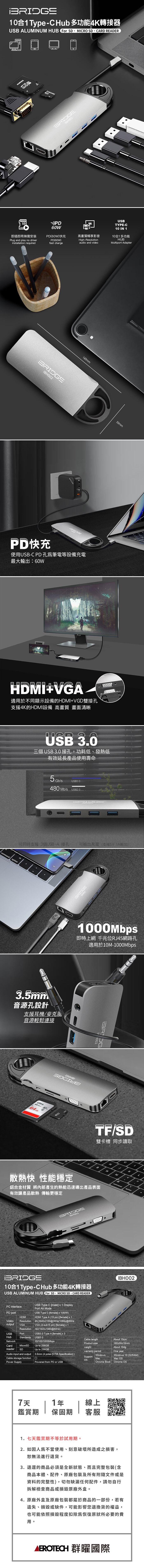 | 【商品名稱或型號】 | iBRIDGE 10合1 Type-C Hub 多功能4K轉接器 |