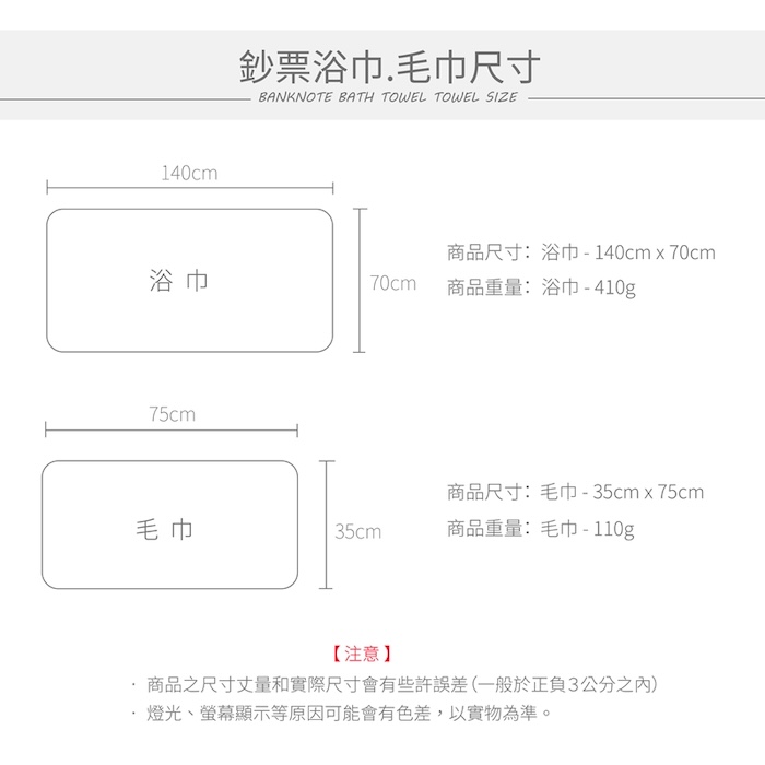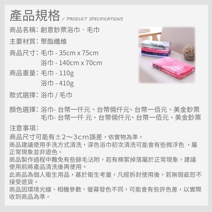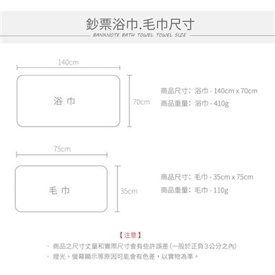 | 【商品名稱】 | 【2入組】吸水鈔票浴巾(140x70cm)-4款可選 |