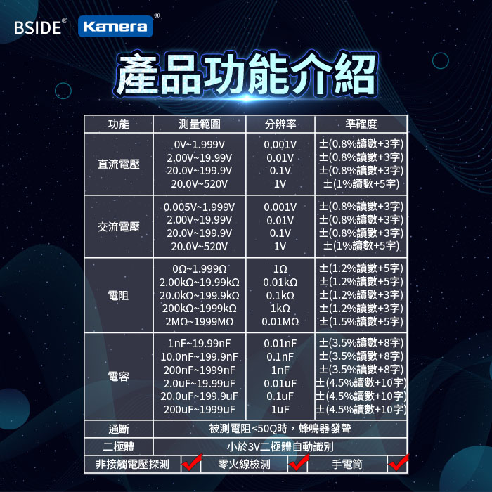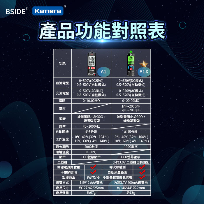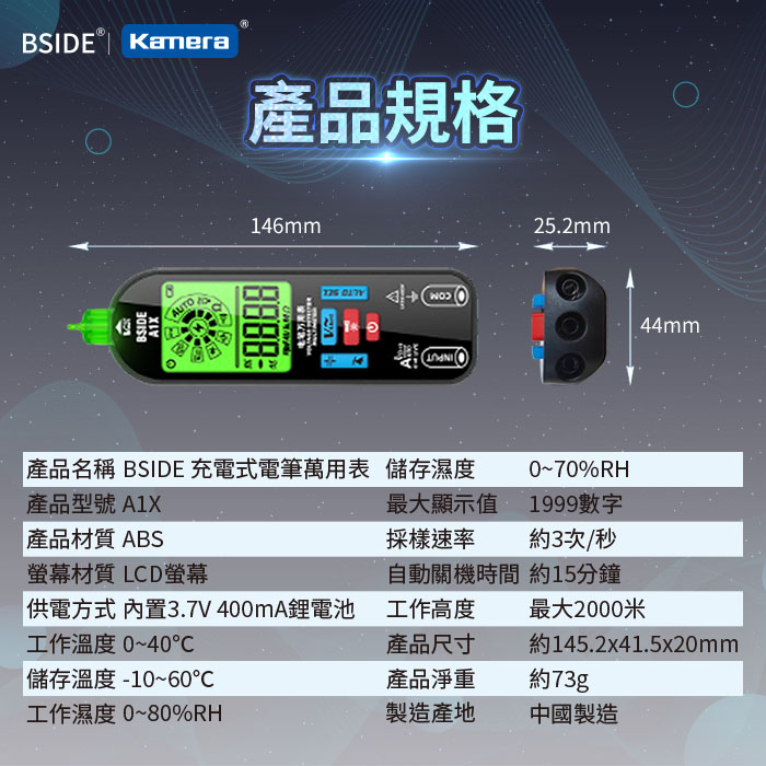 | 【商品名稱或型號】 | BSIDE A1X 充電式電筆萬用表 |