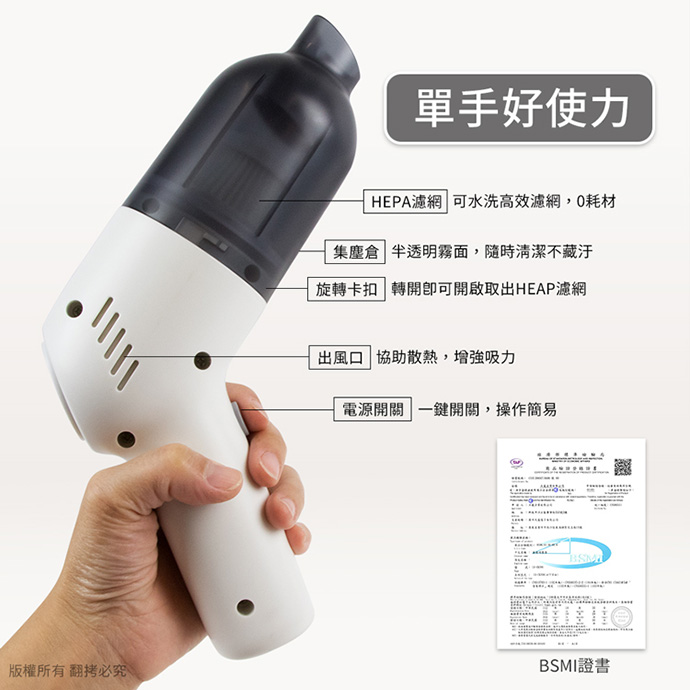 無線設計,車內角落、書桌表面、櫃子內部清潔最Easy。
