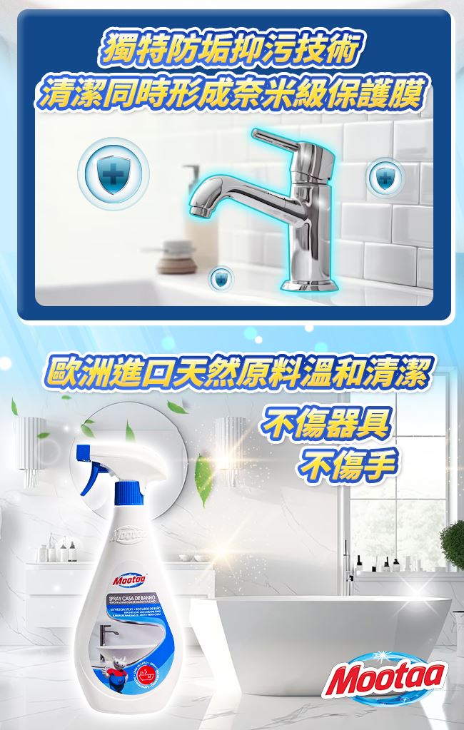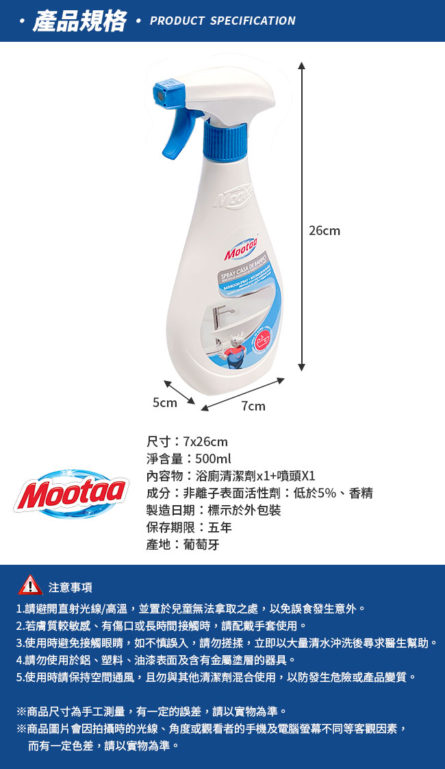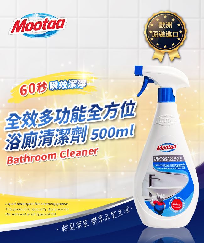 | 商品名稱 | 【Mootaa歐洲原裝進口】全效多功能全方位浴廁清潔劑500ml_2入/組 |