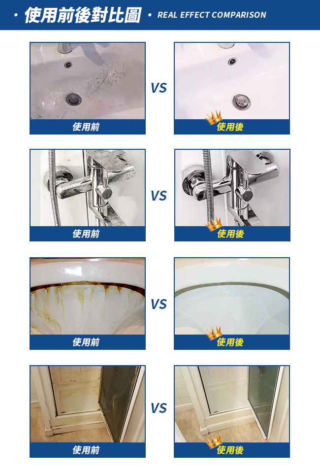 | 注意事項 | 1.本產品不適用於大理石、塗有油漆表面和琺瑯質的物件 2.本品可能造成眼部損傷,如不慎入眼,請用清水反覆沖洗幾分鐘,如有配戴隱形眼鏡,請摘掉後繼續用清水沖洗。 3.使用時避免接觸眼睛,如不慎誤入,請勿搓揉,立即以大量清水沖洗後尋求醫生協助。 4.使用時請保持空間通風,且勿與其他清潔劑混合使用,以防發生危險或產品變質 5.若膚質較敏感、有傷口或長時間接觸時,請配戴手套使用 6.如需要諮詢醫生,請攜帶本品包裝就醫。 7.請避開直射光線/高溫,並置於兒童無法拿取之處,以免誤食發生意外。 8.鑑賞期非試用期,若開封使用後恕不接受退貨。 |