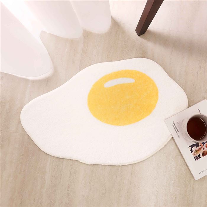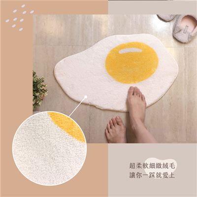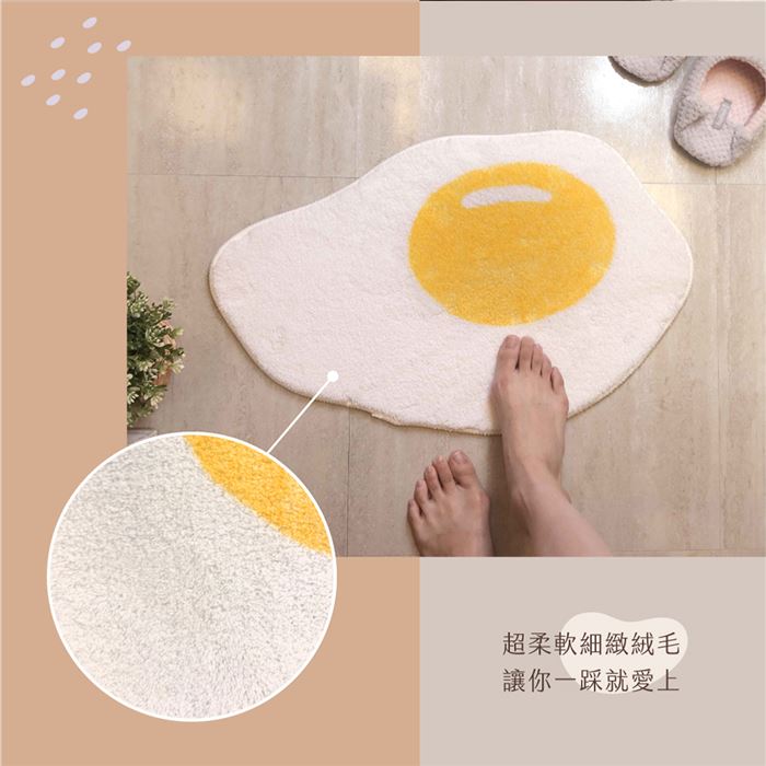 Caldo卡朵生活|早安荷包蛋造型絨毛防滑地墊 40x60cm