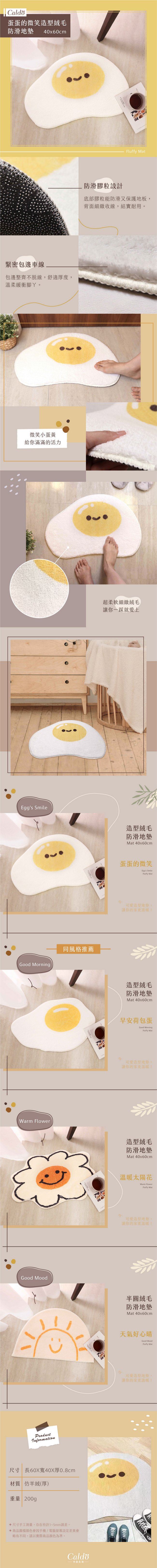 Caldo卡朵生活|蛋蛋的微笑造型絨毛防滑地墊 40x60cm