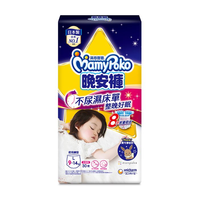 | 包裝內容/商品規格 | 滿意寶寶 寶可夢晚安褲 女L (30片x3包/箱) 褲型 |