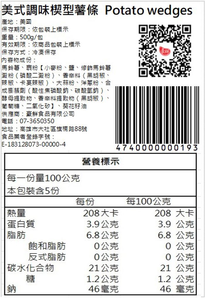 | 商品名稱 | 【赤豪家庭私廚】美式調味楔型薯條10包(500g/包) |